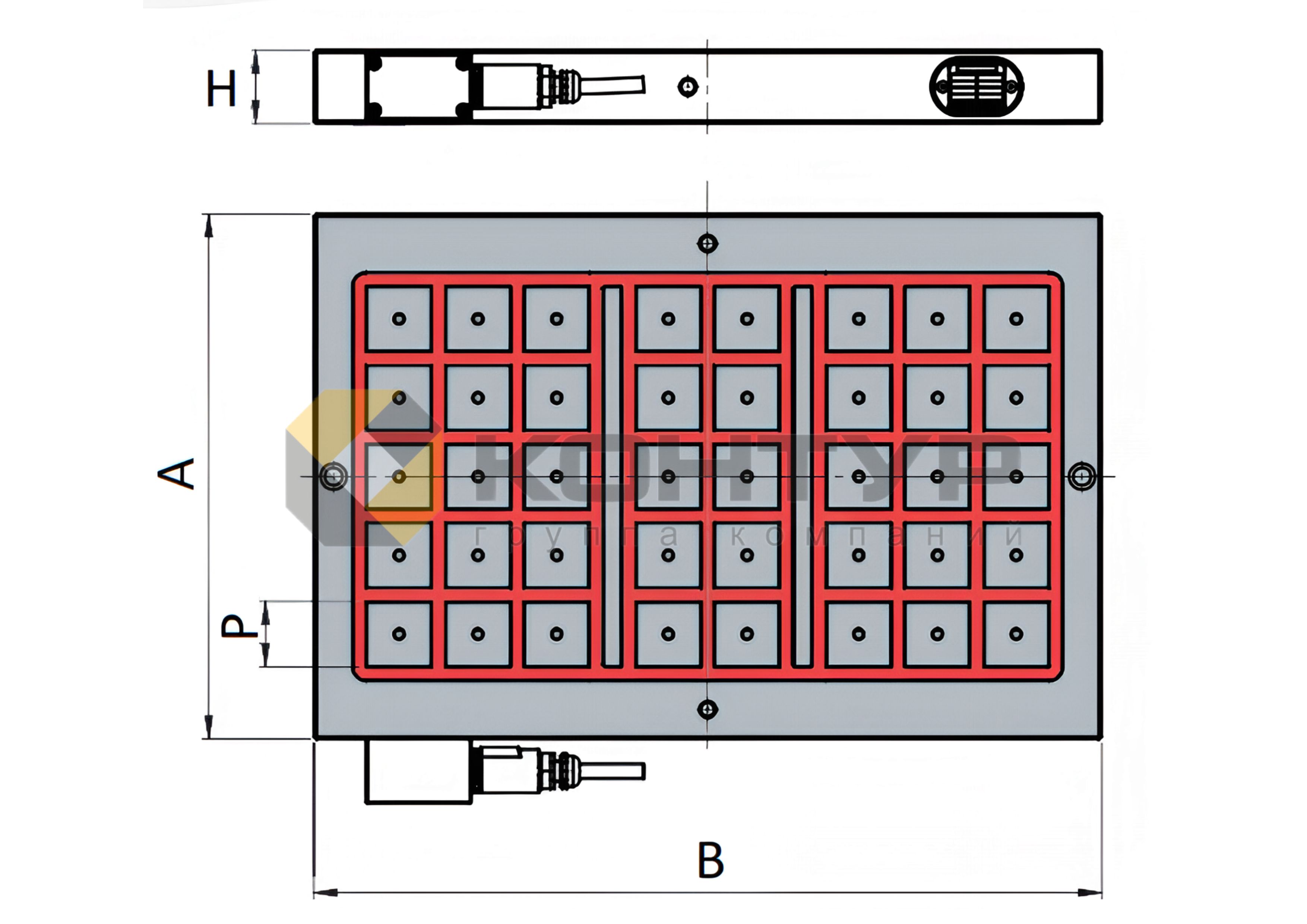 Количество магнитных полюсов (шт.) | Общая магнитная сила (кН) | Габаритные размеры (мм) | Вес (кг) | ||
