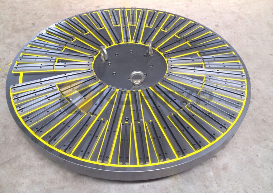 По запросу для любых нестандартных задач возможно индивидуальное изготовление электроперманентных магнитных патронов HVR MAG для карусельных рабочих столов вертикальных токарных станков, в том числе для заготовок неправильной формы или нестандартных размеров, с увеличенной высотой магнитных полюсов, дополнительным оснащением функцией размагничивания заготовок и т.п.
