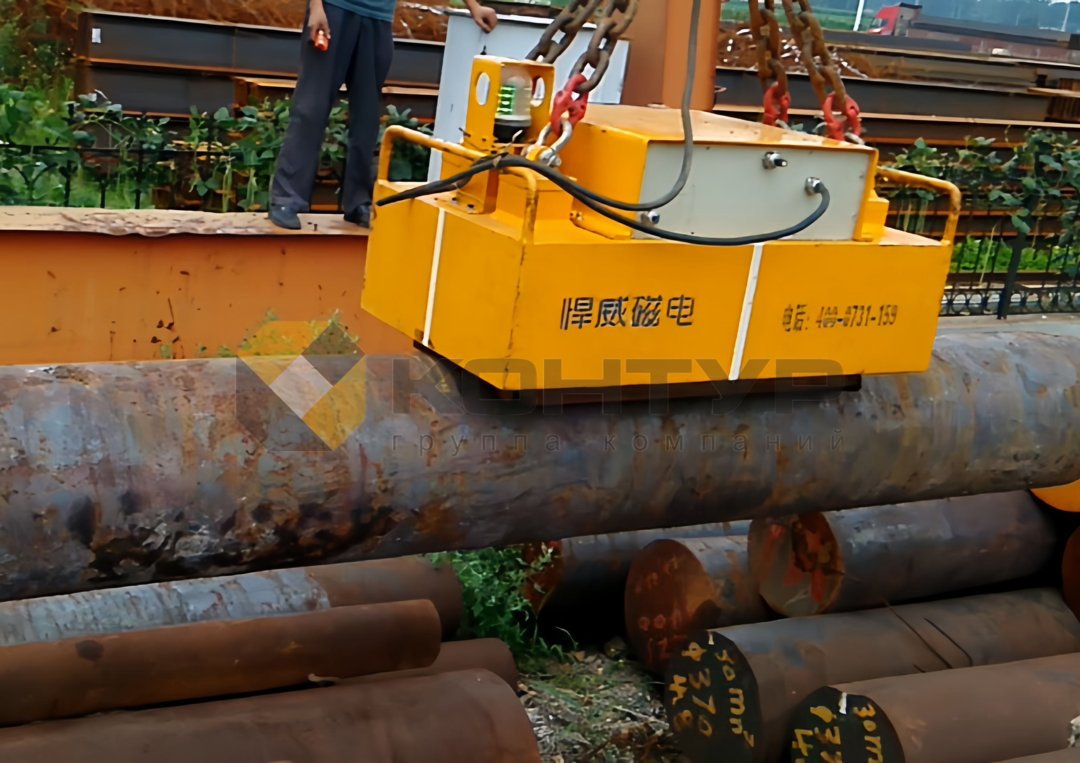 К сожалению, стандартные траверсы с электроуправляемыми постоянными магнитами, подходящие для длинномерного трубного профиля круглого сечения, несмотря на внешнюю схожесть формы груза, зачастую не применимы для перемещения прокатного металлического круга, который по сути является цельным стальным прутком круглого сечения диаметром до 270 мм, а иногда даже до 330 мм. Из-за существенной массы прокатного круга для его захвата и перемещения требуются гораздо более мощные постоянные магниты.