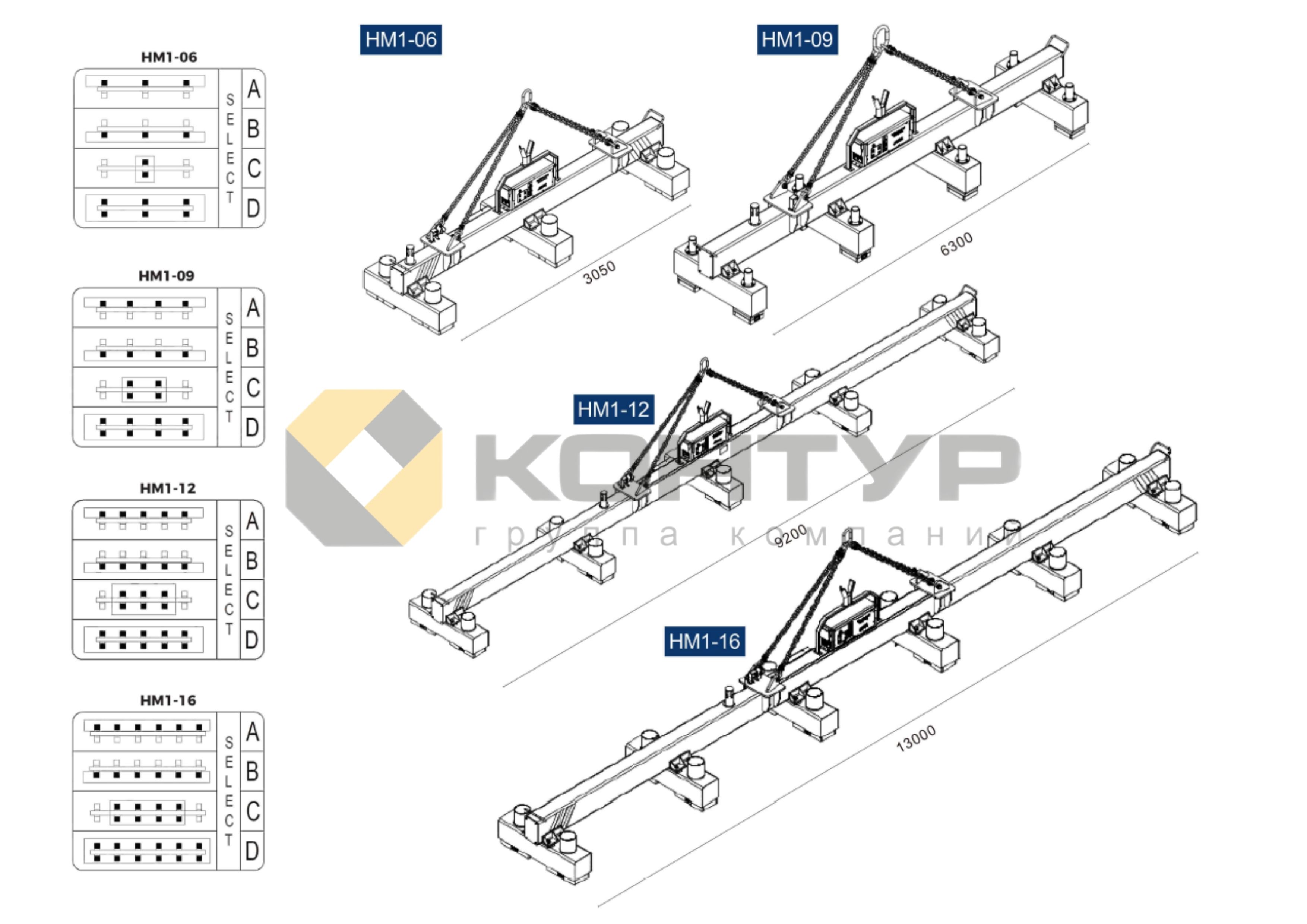 Грузоподъемная траверса с электропостоянными магнитами для листового проката и штрипс, серия HM1