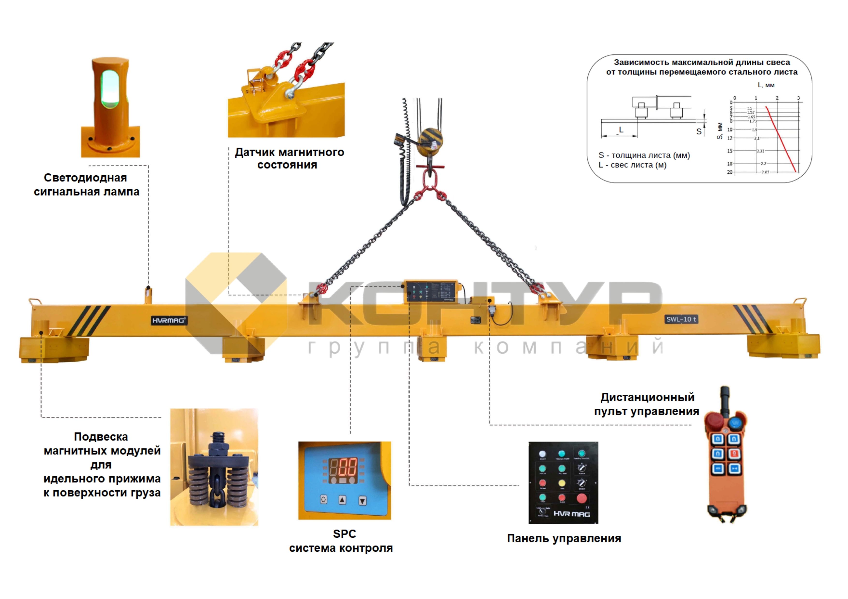 • предназначена для поштучного подъема ферромагнитного стального листового проката и его перемещения в горизонтальном положении