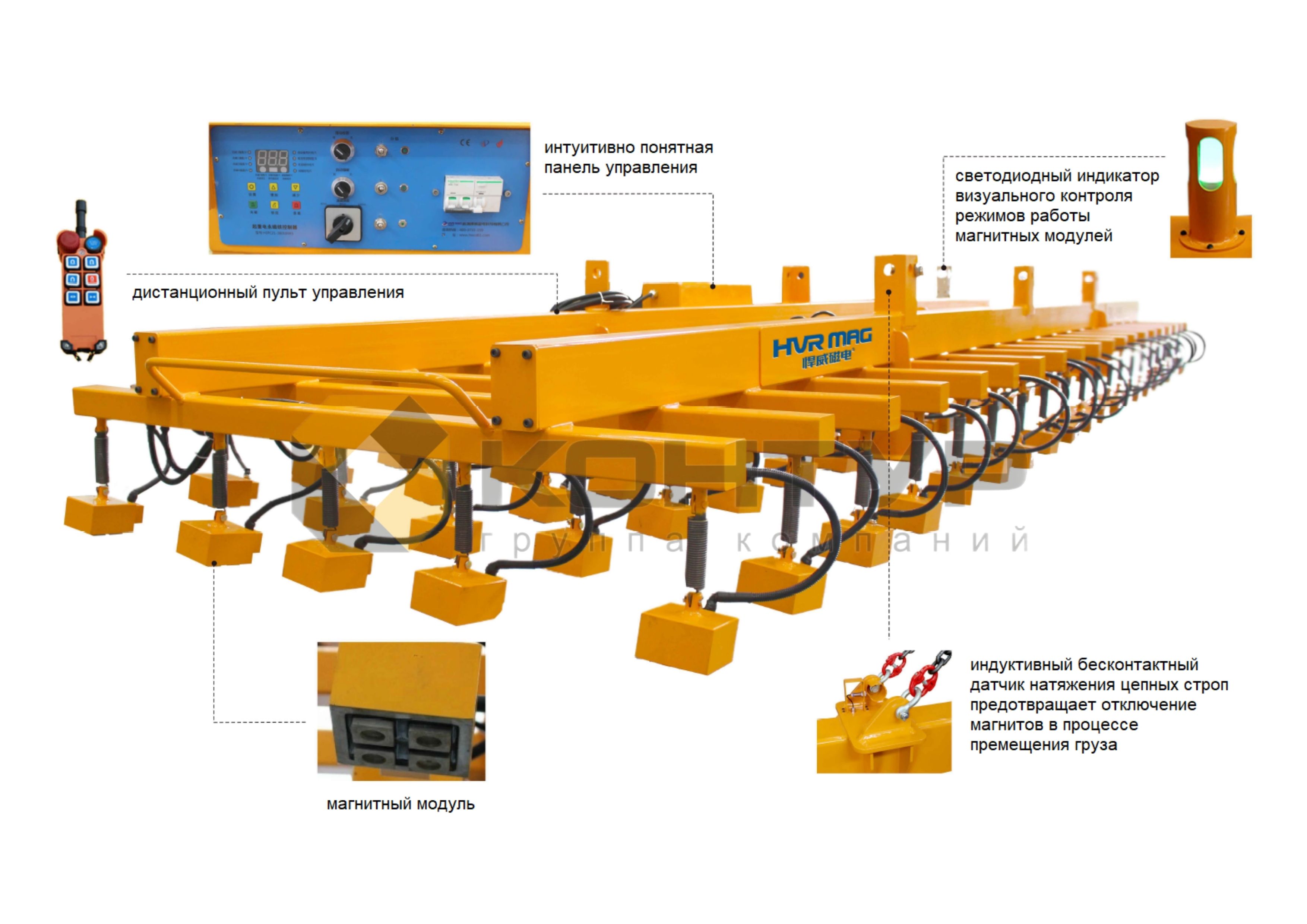 • возможность выбора необходимого числа используемых магнитных модулей для перемещения грузов различных габаритов и массы